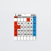 適度な印圧をかけた活版印刷による凹みが1日1日を刻んでいるような、手のひら程度のサイズが1ヶ月のミニカレンダーです。赤い天糊がデザインのポイントにもなっています。穴にピンを刺して壁掛けカレンダーとしてお使いいただけます。小さいながら存在感あるカレンダーです。