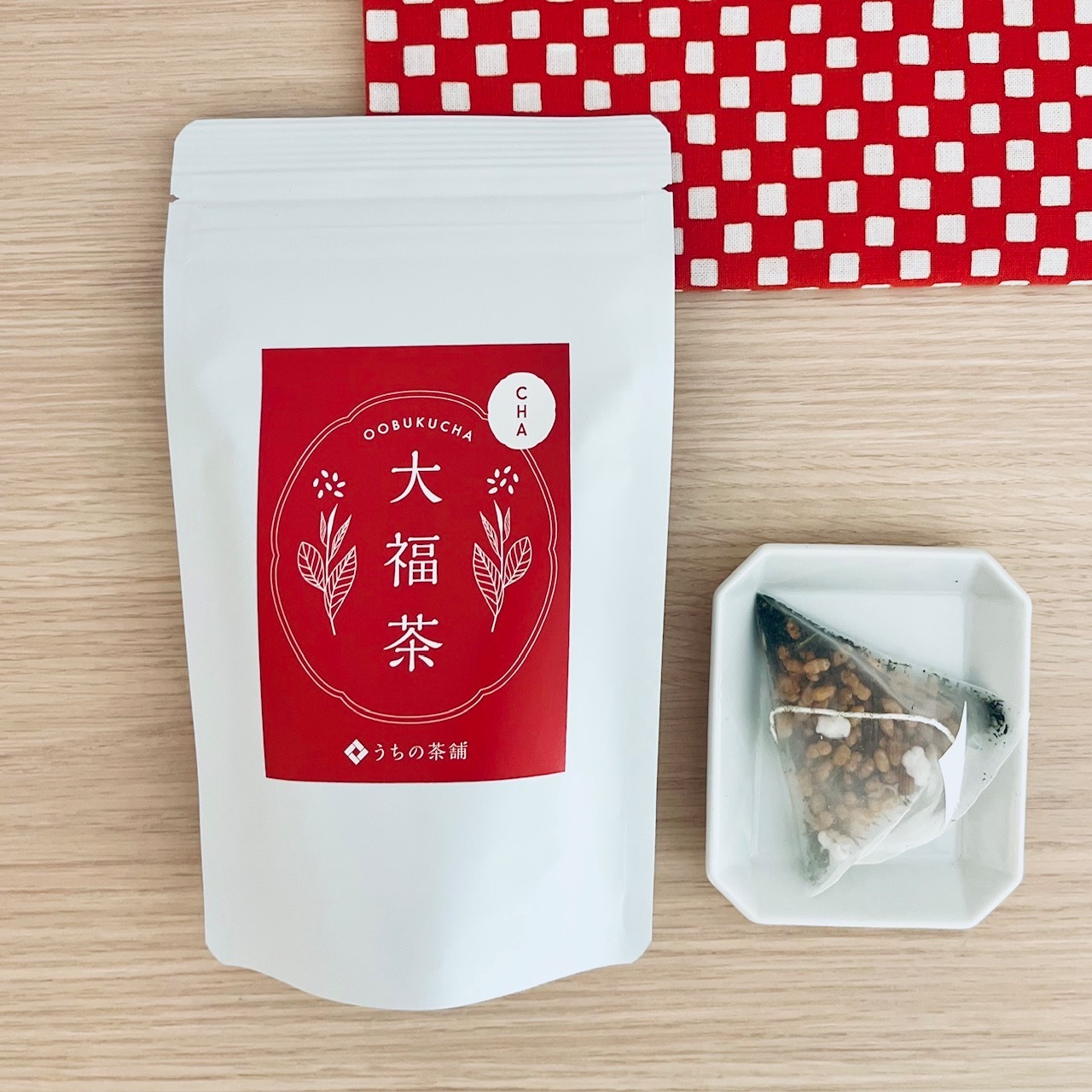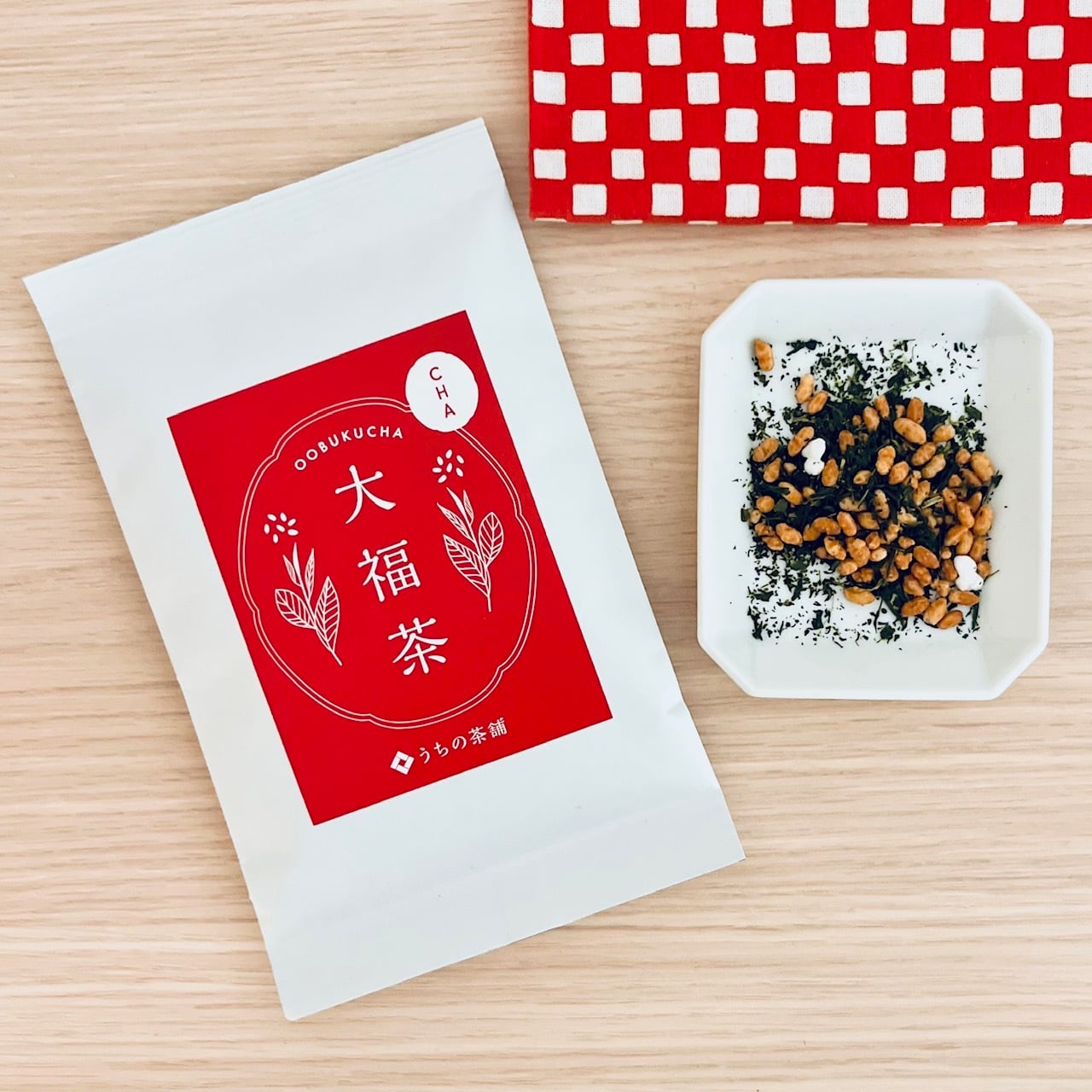 お正月に一年の無病息災を祈っていただく縁起のよいお茶「大福茶(おおぶくちゃ)」です。静岡の「うちの茶舗」さんのお茶です。