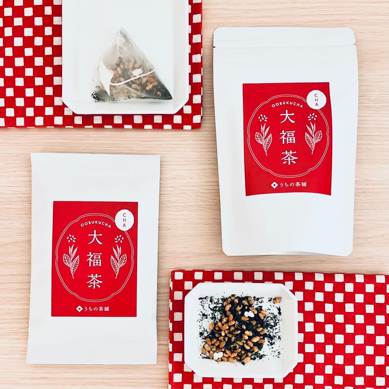 大福茶は地域や各茶店によって中身は様々のようですが、うちの茶舗さんの大福茶は厳選された茶葉を使用した贅沢な玄米茶です。深蒸し茶の濃厚な味わいとお湯を注いだ瞬間立ち上がる玄米の香ばしい香りをお楽しみ下さい。リーフタイプと気軽に楽しめるティーバッグタイプがあります。